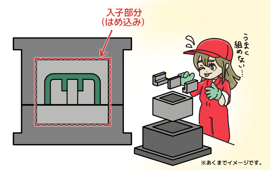 この「入子」ってゆーのは、金型本体に別部品としてはめ込む型部品のことや。